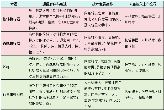 三、人形机器人产业链构成及各环节对应的A股上市公司