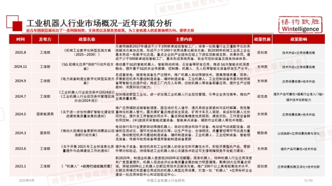 近日,国内知名工业研究机构格物致胜(Wintelligence)发布了《2025中国工业机器人行业白皮书》,这份50页的行业报告全面梳理了我国工业机器人市场现状、竞争格局与发展趋势。作为工业领域的专业研究机构,格物致胜再次为我们带来了一份高质量行业分析。