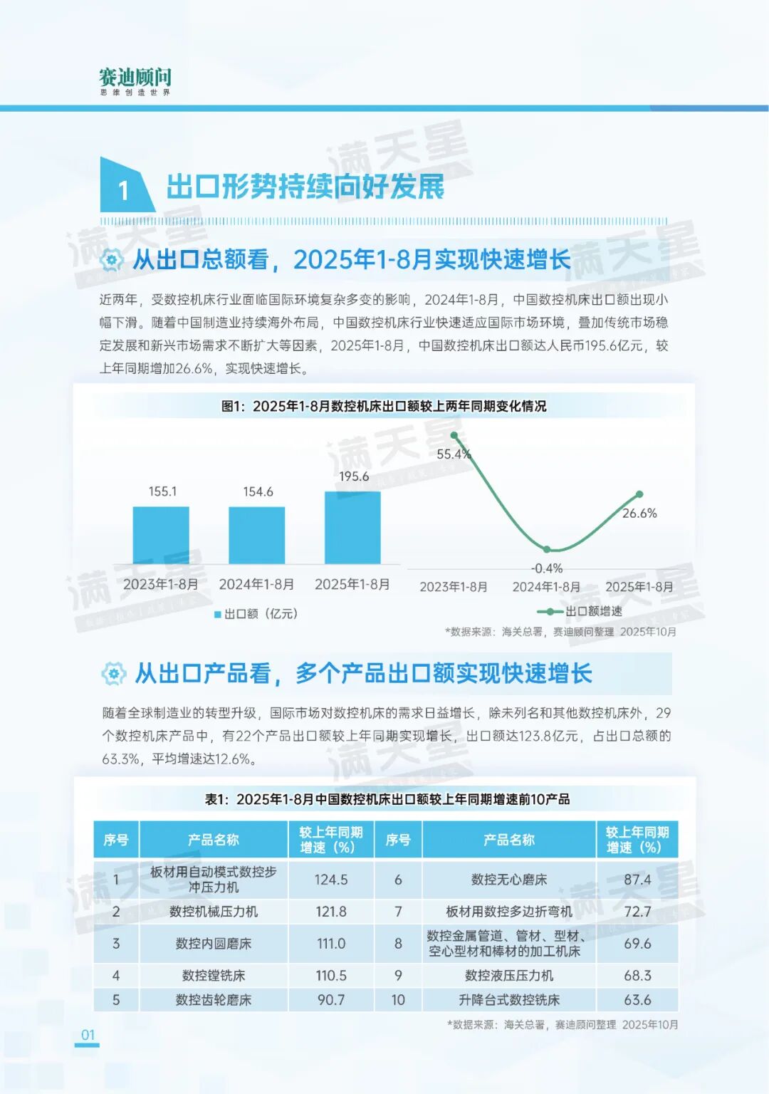 随着全球制造业的转型升级,国际市场对数控机床的需求日益增长,除未列名和其他数控机床外,29个数控机床产品中,有22个产品出口额较上年同期实现增长,出口额达123.8亿元,占出口总额的63.3%,平均增速达12.6%。