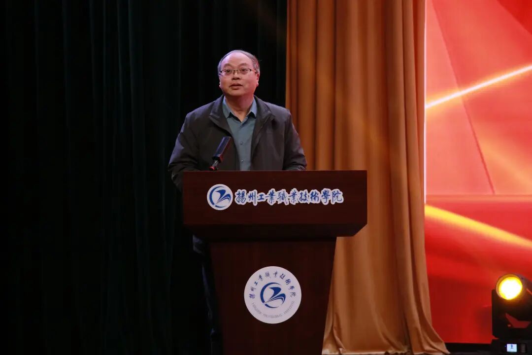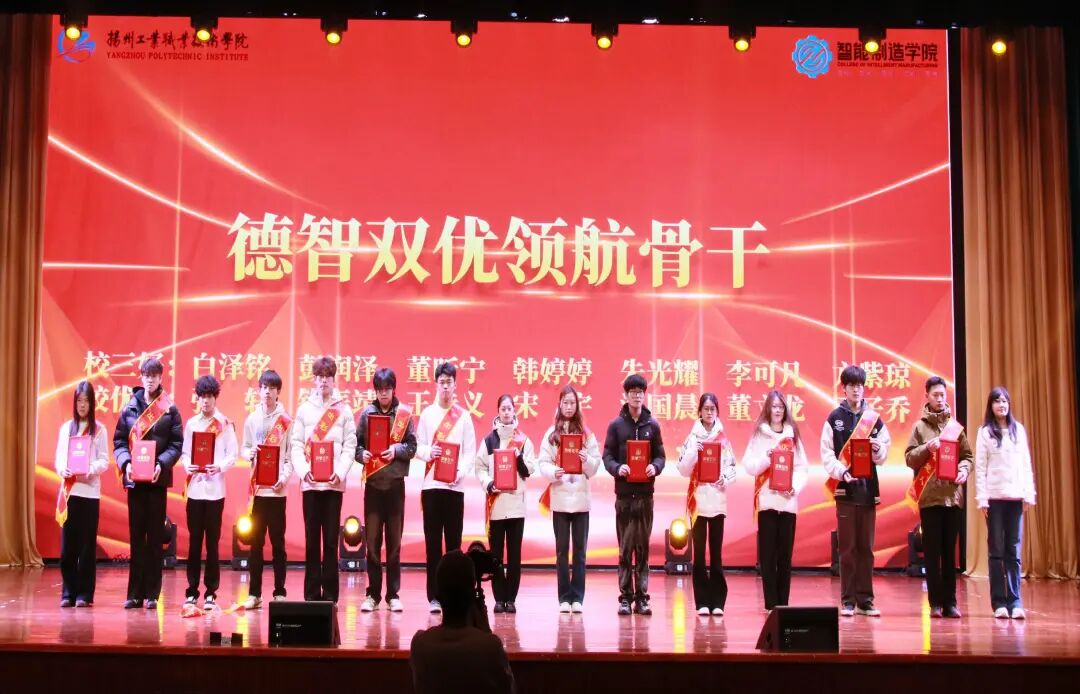12月17日晚,智能制造学院“新质逐梦·荣耀领航”2025年度学生表彰大会在维扬大礼堂隆重举行。校学工处处长徐琳、保卫处处长许万飞、团委书记陈粲、机关第二党总支书记、图书馆副馆长刘晓宏、教务处副处长王伟,学院党总支书记王庭俊、院长杨润贤及学院领导班子成员、各教研室主任、全体2025级班主任/辅导员、受表彰学生代表与2025级学生代表齐聚一堂,共同见证荣耀时刻。大会由吕杰、刘雯轩主持。