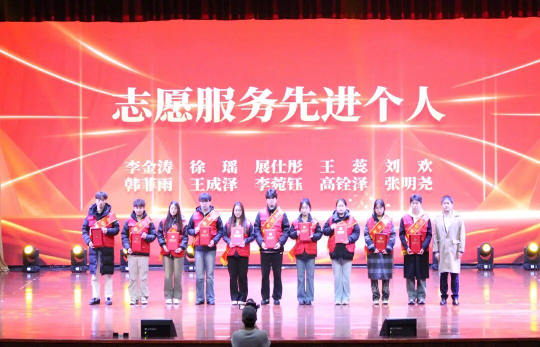 伴随着庄严的国歌旋律,全体与会人员肃立,表彰大会正式拉开帷幕,现场气氛庄重热烈。本次表彰分为“青春底色・成长星芒”“责任担当・先锋领航”“卓越进阶・多维华章”三个篇章,全面覆盖志愿服务、文体活动、团学工作、学业科研、实践创新、品德修养等多个领域,对年度表现突出的优秀个人与先进集体集中授奖。