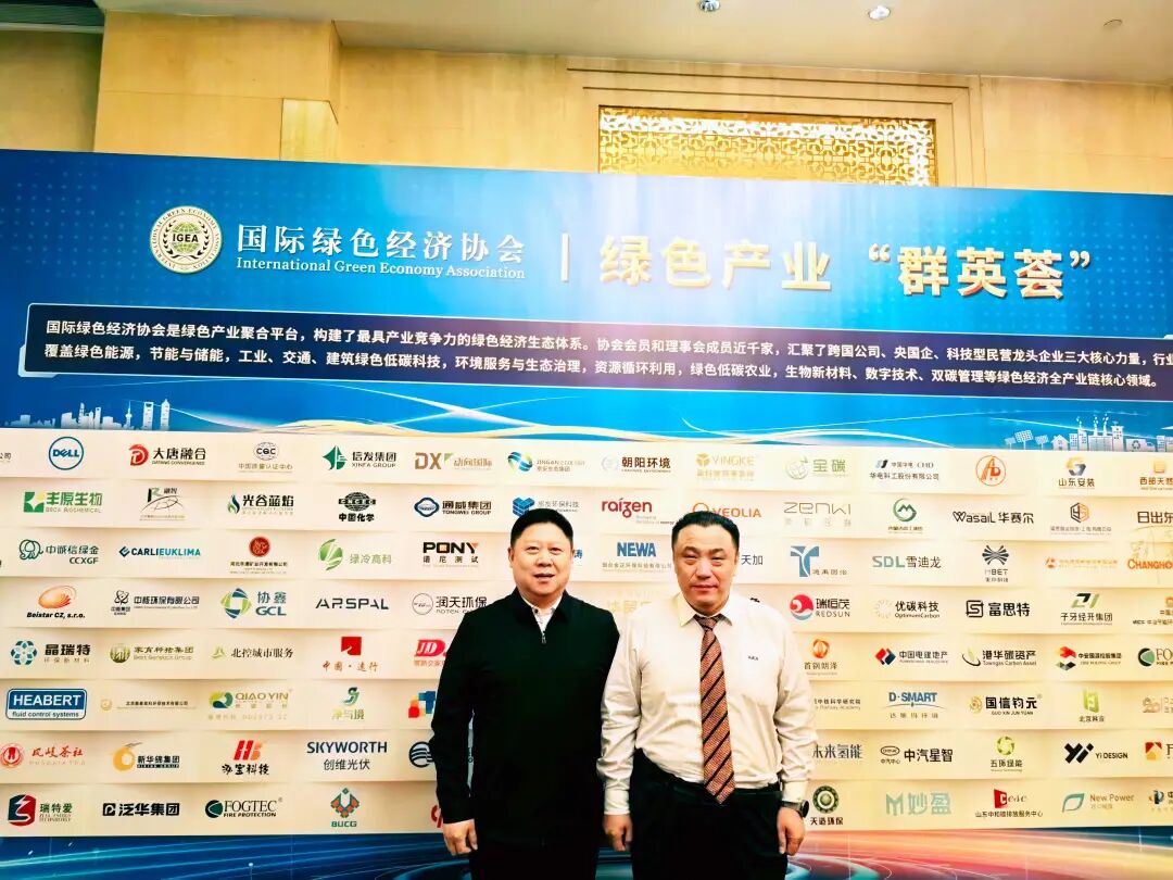图为绿气新能源总经理周思宇(左)与国际绿色经济协会执行会长邓继海(右)在会议现场合影