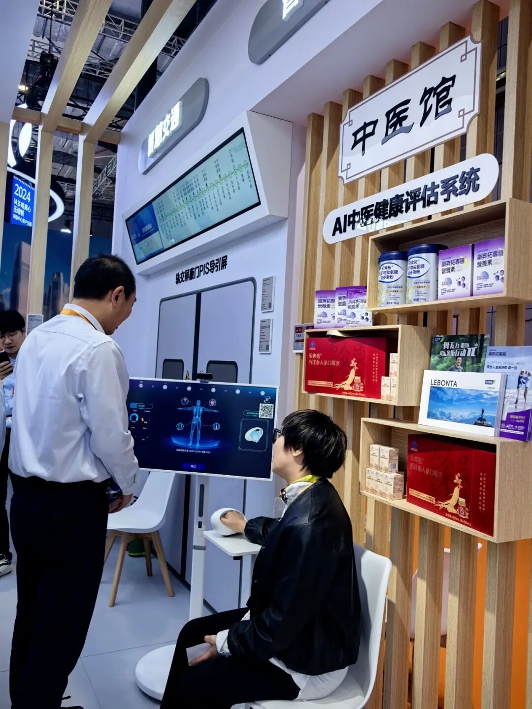 在互动流程的起始阶段,专业工作人员会引导观众体验AI问诊,并依据系统生成的个人健康报告或观众实时提出的需求,进行针对性的一对一专业解读。此环节旨在精准锚定观众的个人健康关注点,帮助参观者理解自身健康需求,这一服务获得了参展观众的良好反馈,也进一步契合了大健康领域与数字技术融合的发展趋势。