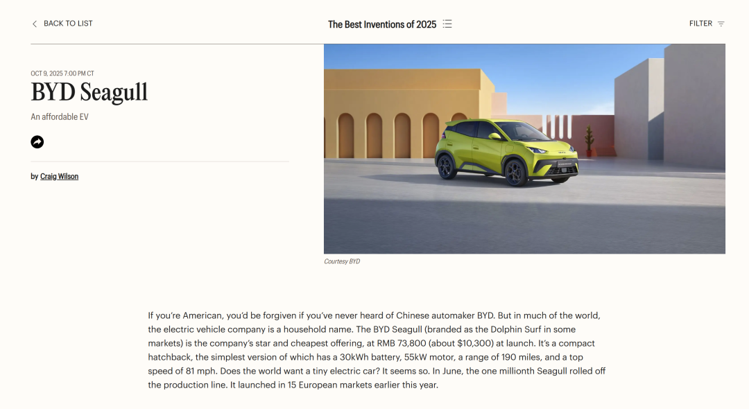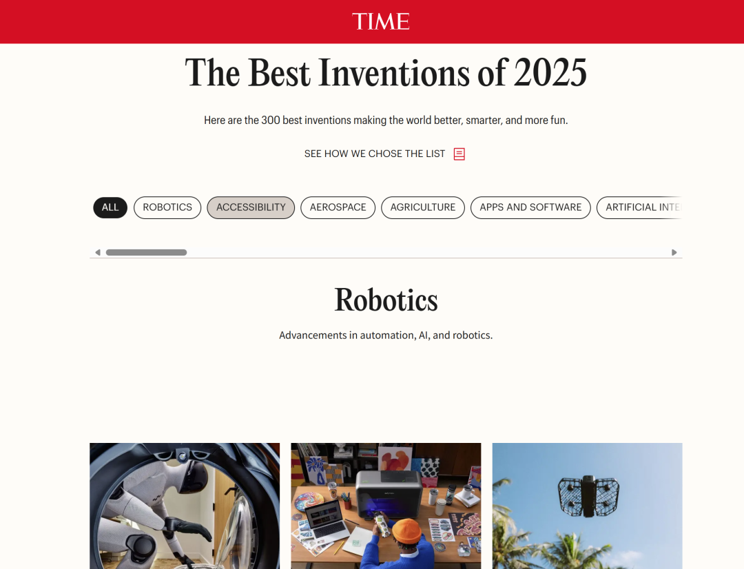 近日,美国《时代》杂志正式公布了2025年最佳发明榜单,共有300项发明入榜单,涵盖了人工智能、机器人、健康等多个领域。与以往不同,在这份榜单中我们发现了许多“Made in China”的身影,接下来就让我们一起去看看一些成功入榜的“国货“吧。