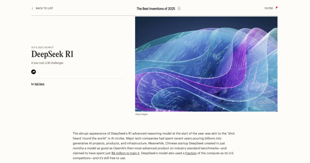 我们无法想象一个没有AI的世界!自从2022年Chatgpt横空出世以来,AI为人类带来了许多便利。那么我们国家有没有一款性能强大的可以比肩Chatgpt的AI呢?2023年11月,Deepseek的发布为这个问题画上了句号。作为性能优秀的国产品牌,目前Deepseek已经推出DeepSeek V2、DeepSeek V3、DeepSeek R1等产品,其中Deepseek R1更是被时代周刊评选入围2025最佳发明。
