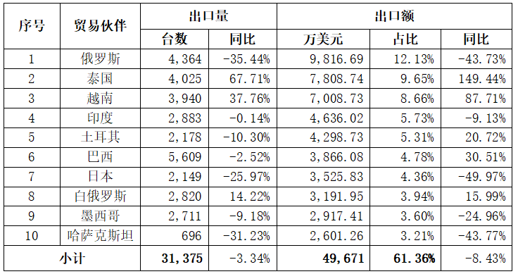 2025年1-12月,我国向俄罗斯、越南、泰国、土耳其、印度、巴西等170个贸易伙伴出口车床产品,其中俄罗斯出口额9,816.69万美元居首、同比下降43.7%,新兴市场的越南、泰国出口额同比增长超80%,土耳其、巴西出口额同比增长超20%,出口额TOP10出口地如下。
