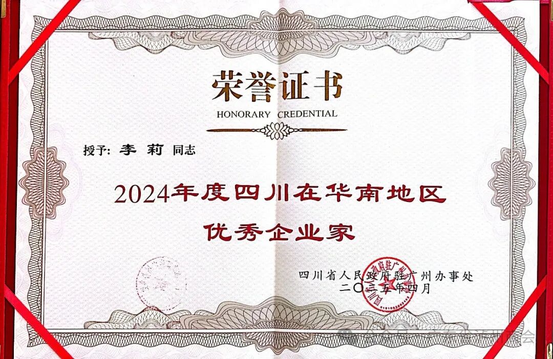 为表扬先进、树立典型,会议对2024年度表现突出的6家四川省驻华南地区机构成绩突出单位、3家四川省驻华南地区机构信息宣传工作先进单位、15家四川在华南地区优秀商(协)会和校友会、9名四川省驻华南地区机构成绩突出个人、3名四川省驻华南地区机构信息宣传工作先进个人、29名四川在华南地区优秀企业家进行了集中表扬。其中,广东省泸州商会再次被评为“2024年度四川在华南地区优秀商(协)会”称号,这也是广东省泸州商会从2018年以来连续7年喜获此殊荣。广东省泸州商会常务副会长、瑞康医生集团创始人兼总裁李莉被授予“2024年度四川在华南地区优秀企业家”荣誉称号!
