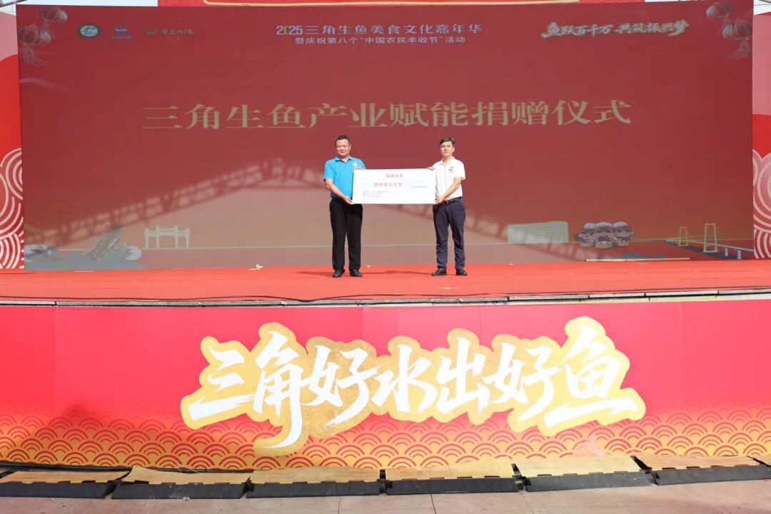 活动现场还举行了产业赋能捐赠仪式,三角镇渔业协会捐赠十五万元,专项用于支持生鱼产业科技与品牌发展。