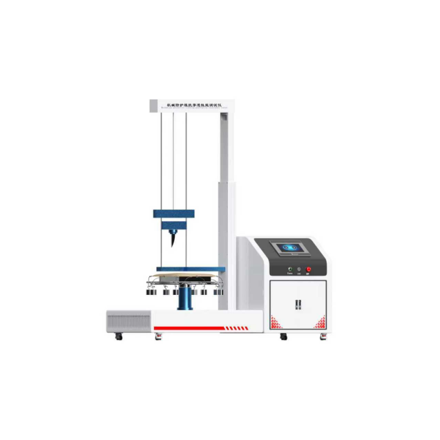 机械防护服抗穿透性能测试仪主要用于测试金属链甲手套、护臂和机械防护服的抗冲击穿透能力。通过特定的坠落块对试样施加冲击能量,模拟手持刀具等对手部和手臂的冲击情况,以评估金属链甲手套和护臂和机械防护服的防护性能。
