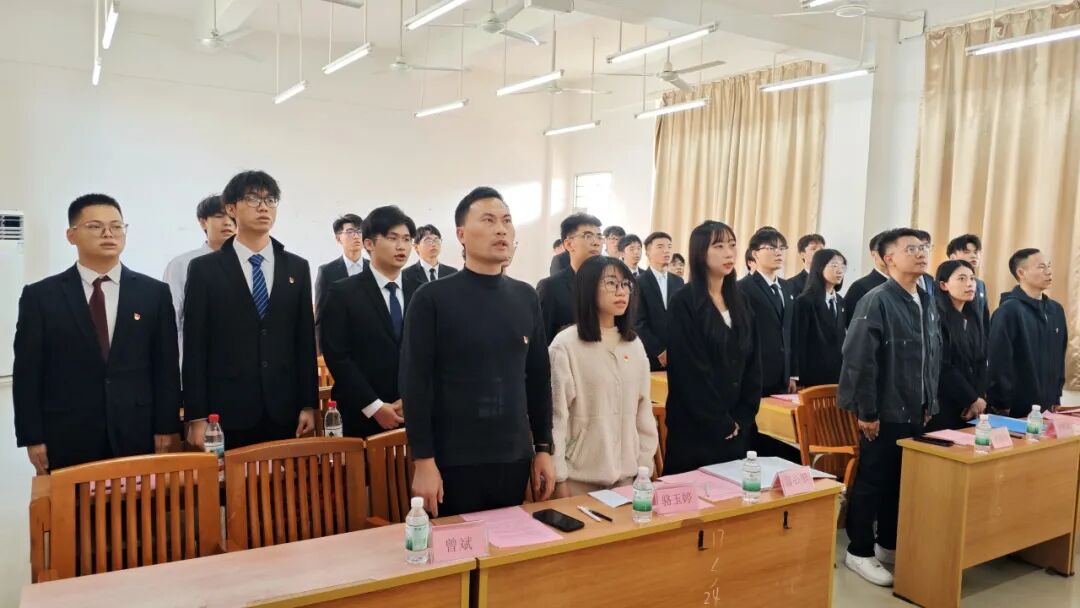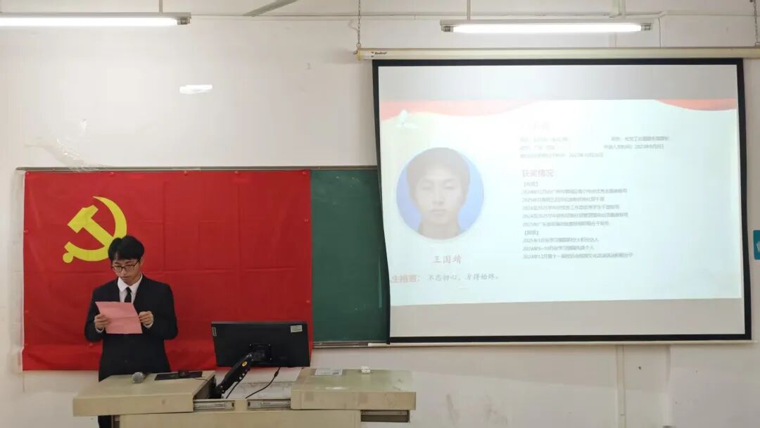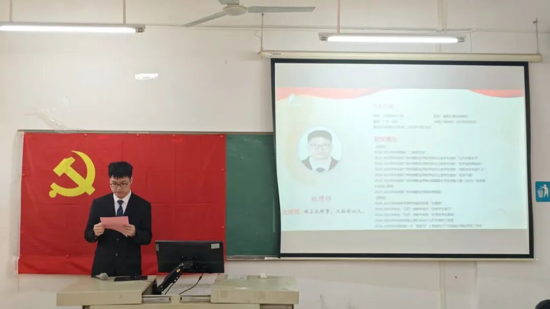 为了深入学习贯彻习近平新时代中国特色社会主义思想,不断加强并推进党员队伍的建设工作,为党组织吸收新鲜血液,2025年12月8日,智能制造与汽车技术学院学生第一党支部在博学楼C503教室召开2025年秋季学期预备党员通表大会,智能制造与汽车技术学院党总支副书记姚柏洲同志、学生第一党支部支部委员、党员老师代表、学生党员以及发展对象参加此次会议。