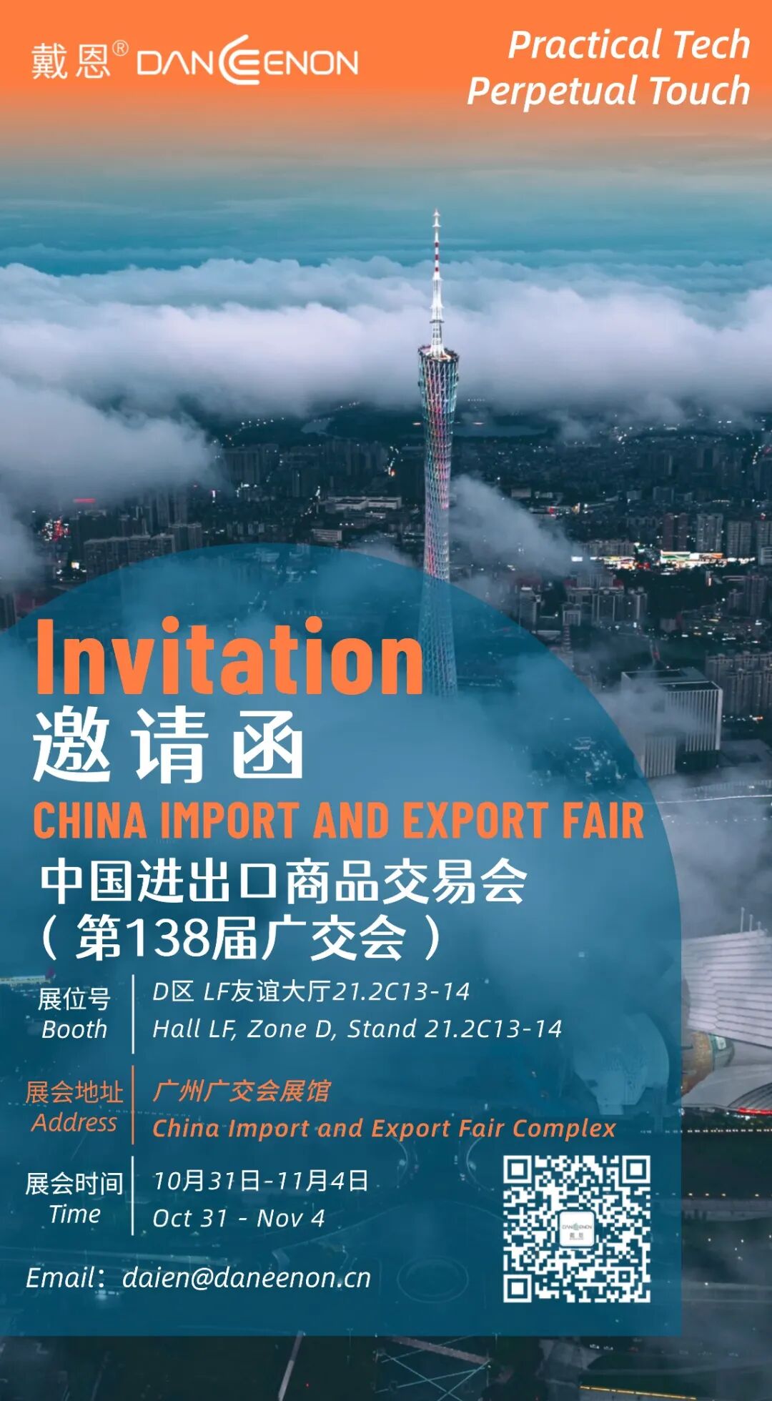 China Import and Export Fair 2025 (the third phase of the 138th Canton Fair) will be held from October 31 to November 4. Daneenon will join the Hangzhou delegation to appear in the smart medical zone set up for the first time in the fair, display the innovation achievements of rehabilitation nursing, and comprehensively empower the intelligent upgrading of the medical and health industry.