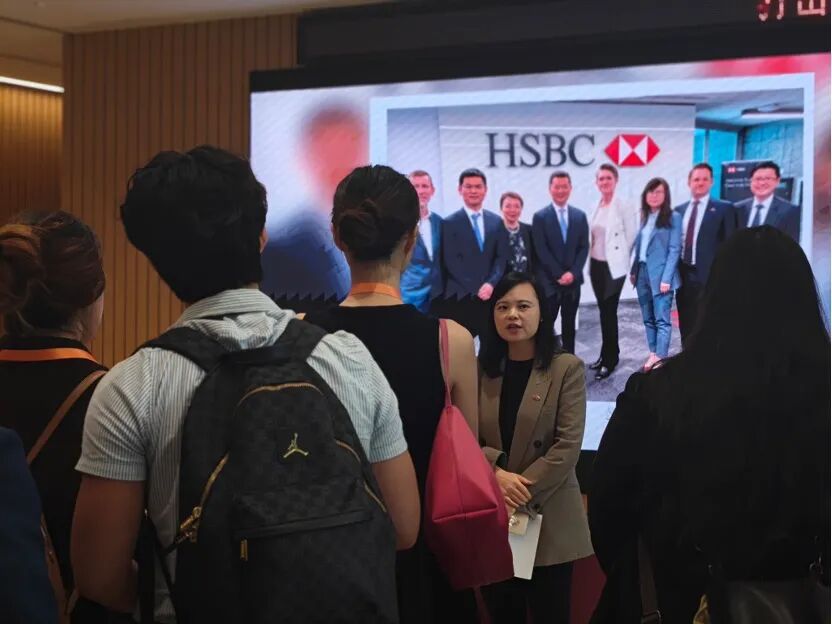 港中大(深圳)经管学院师生一行首先来到汇丰银行参访交流。作为在中国扎根超过160年的历史悠久的金融机构,汇丰的工作人员带领师生们参观了银行大楼,展示了其前沿的设施与深厚的文化底蕴。在公司顶层的会议室里,几位嘉宾为同学们带来了一场干货满满的讲座。
