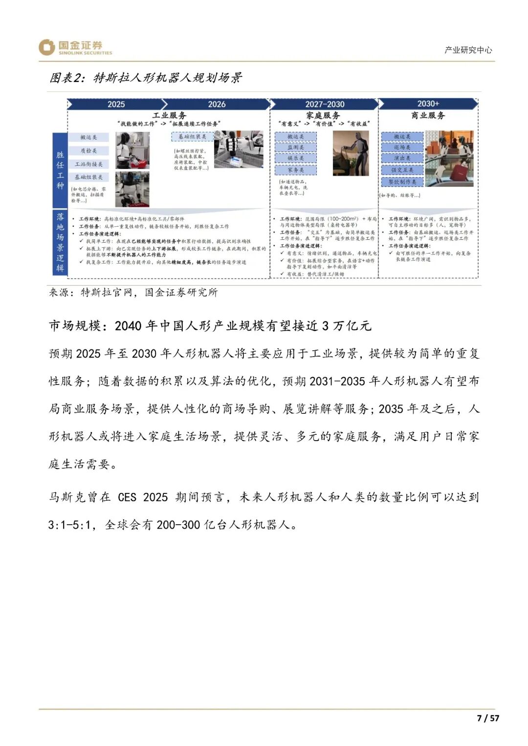 人形机器人产业正处于快速发展阶段,海外企业如特斯拉已进入小批量生产阶段,计划未来大规模扩产,而国内产业链在政策和融资支持下也已初步放量。从短期来看,企业依靠商务能力切入市场,凭借原创技术获得认可,长期则需要通过降本能力来获取更大市场份额。