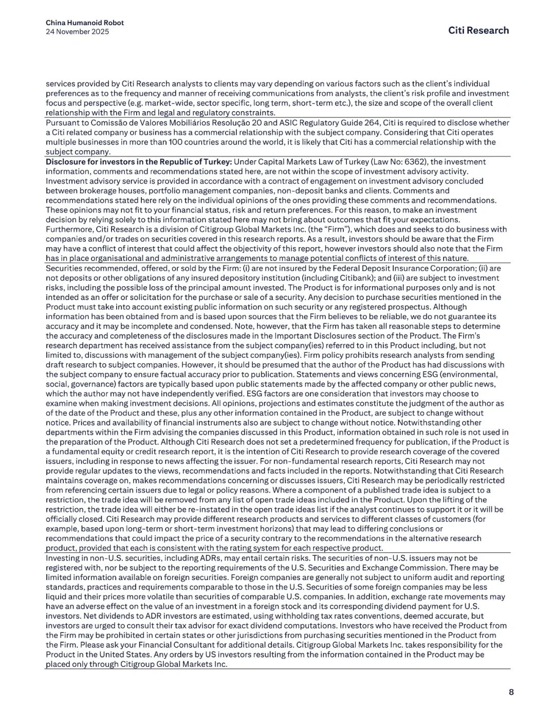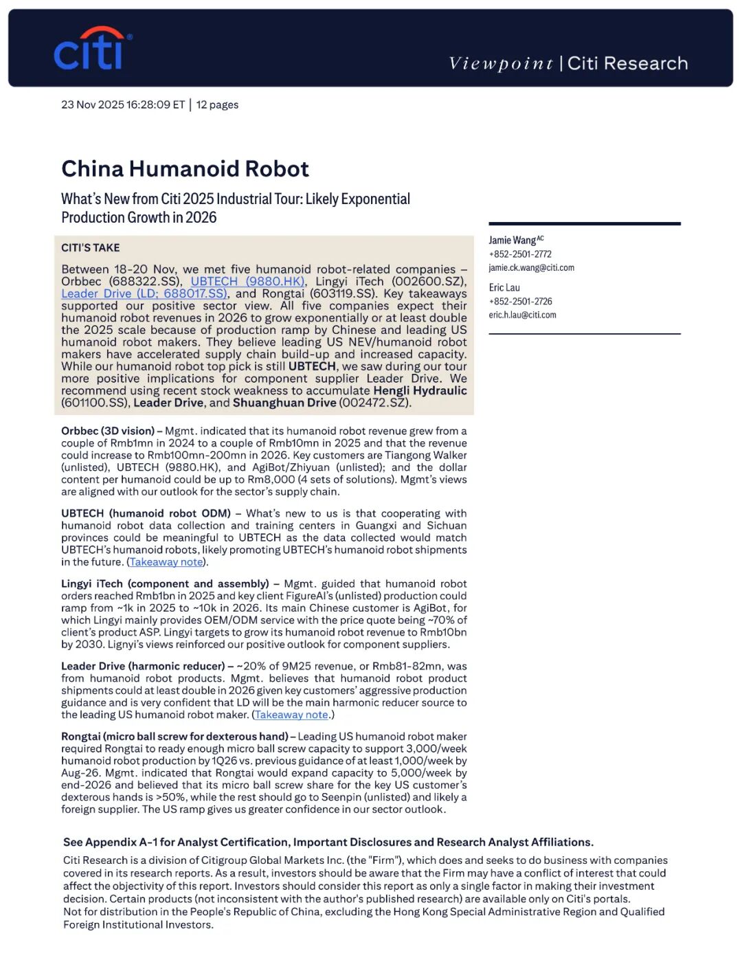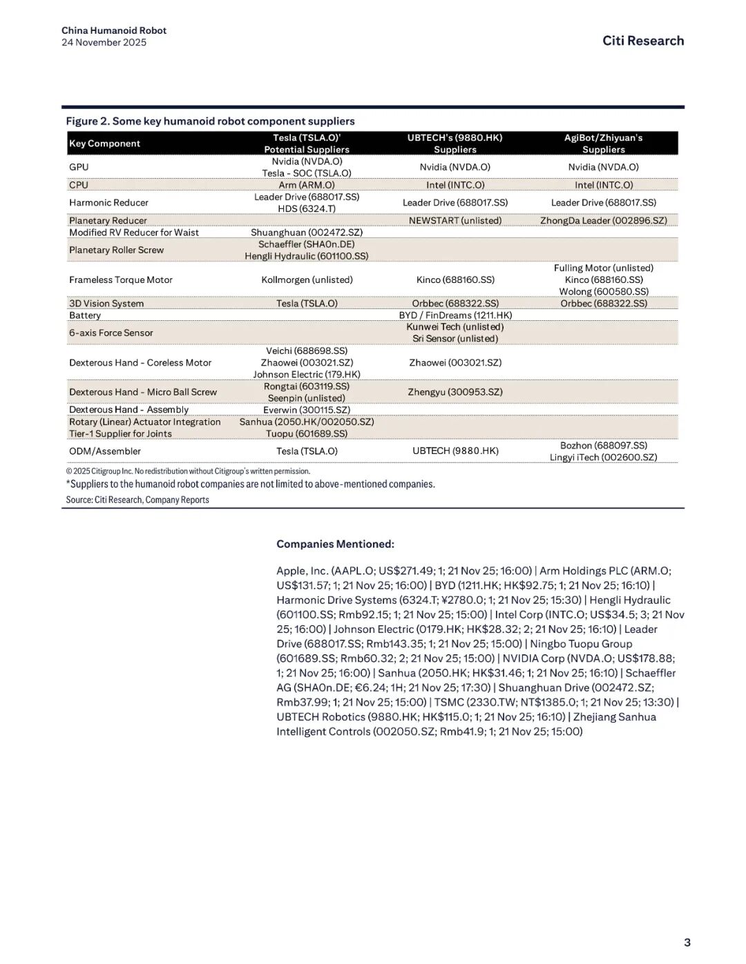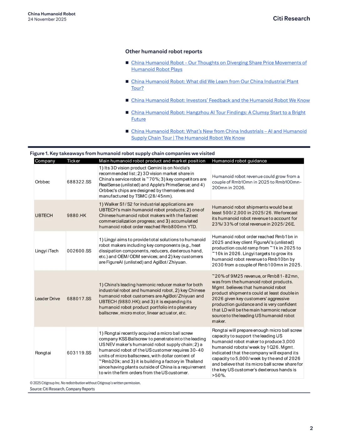 报告名称:中国人形机器人行业——2025年产业调研新发现 出 品 方:花旗