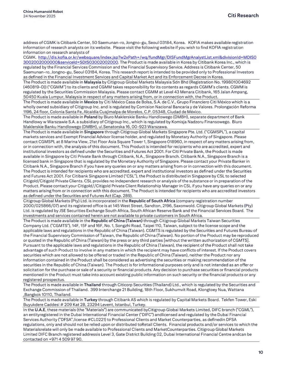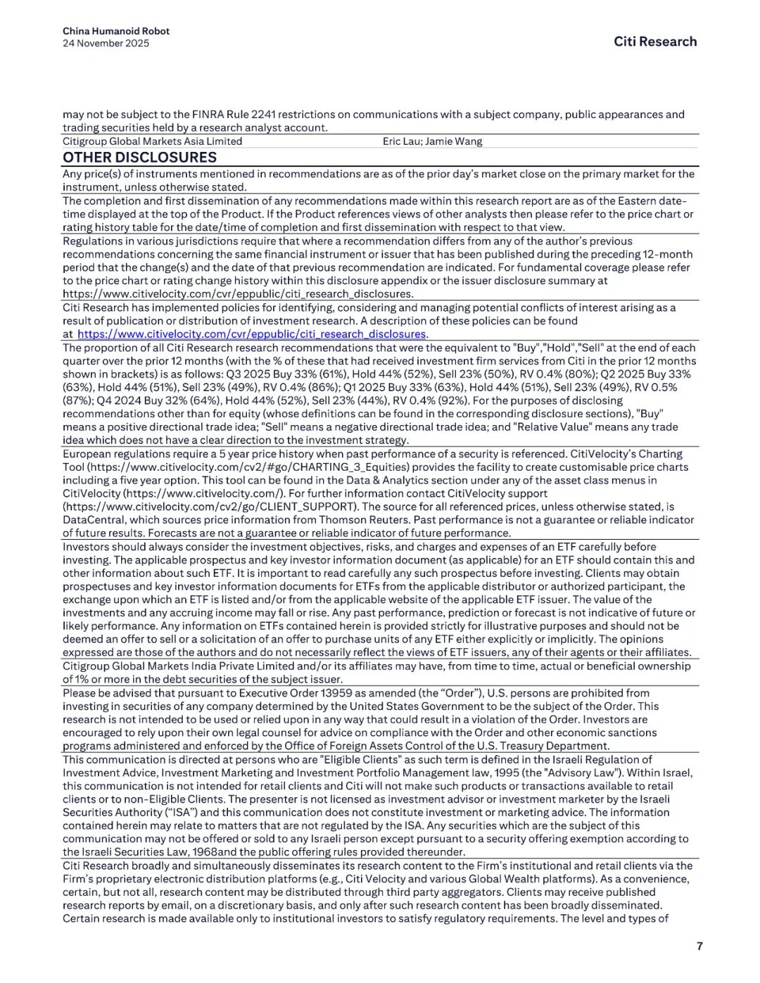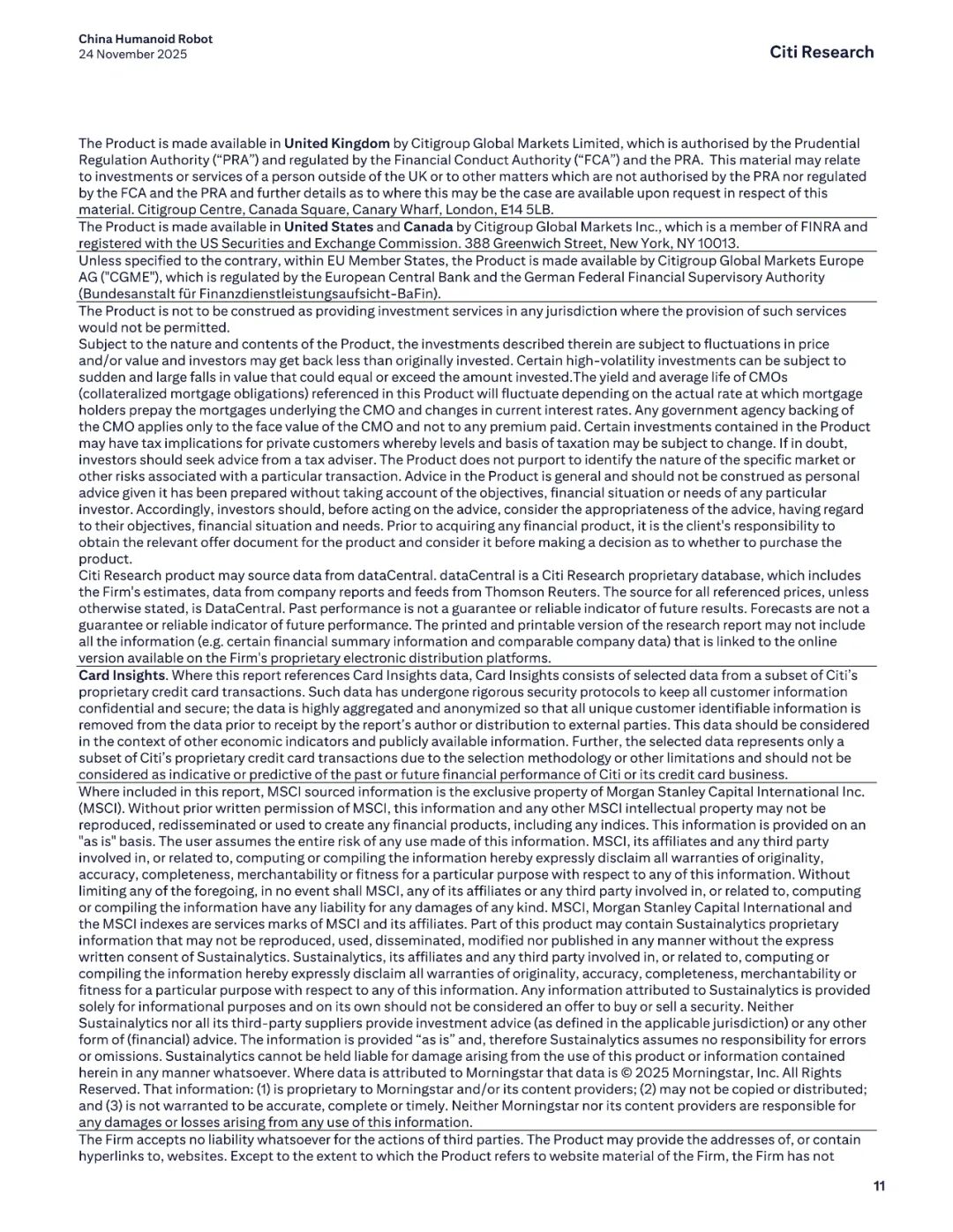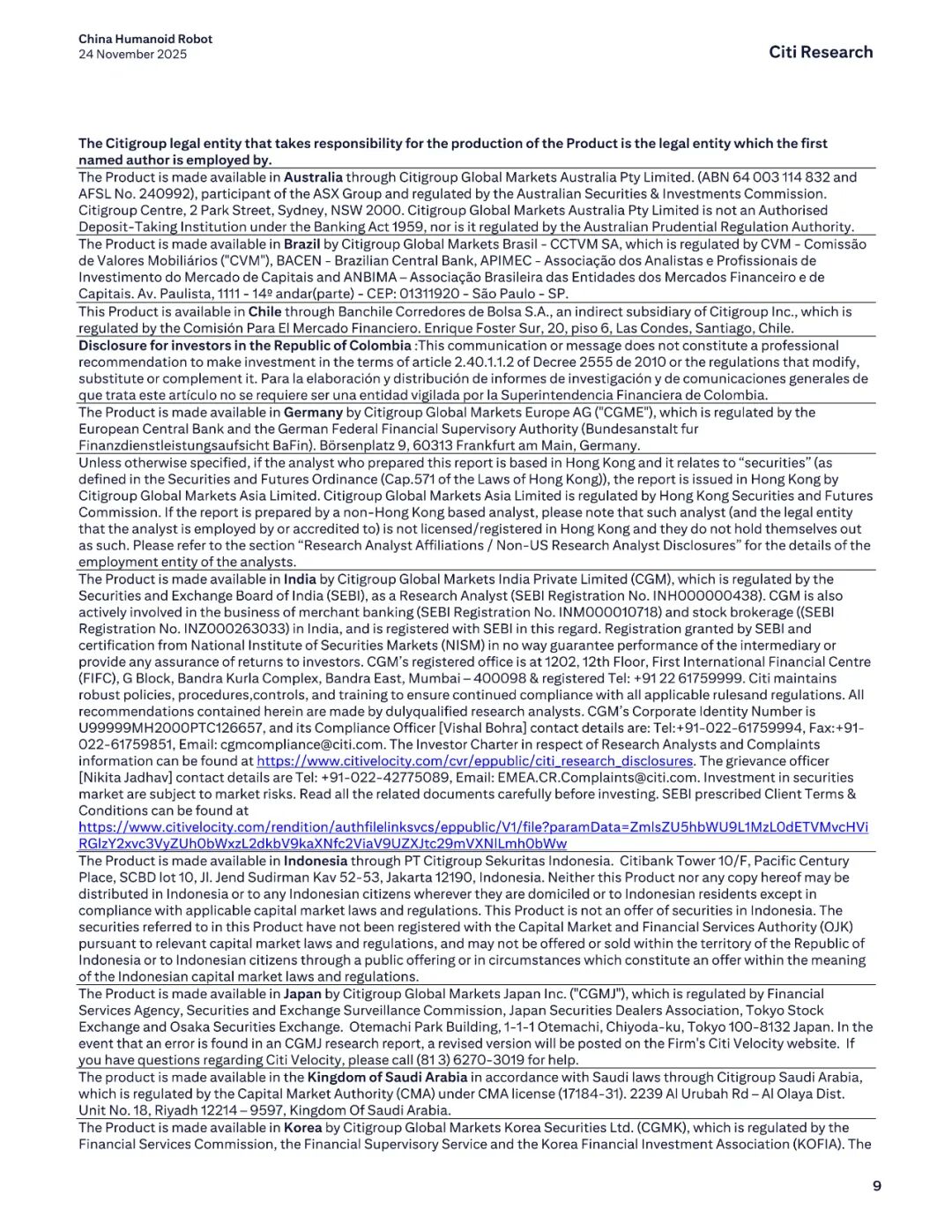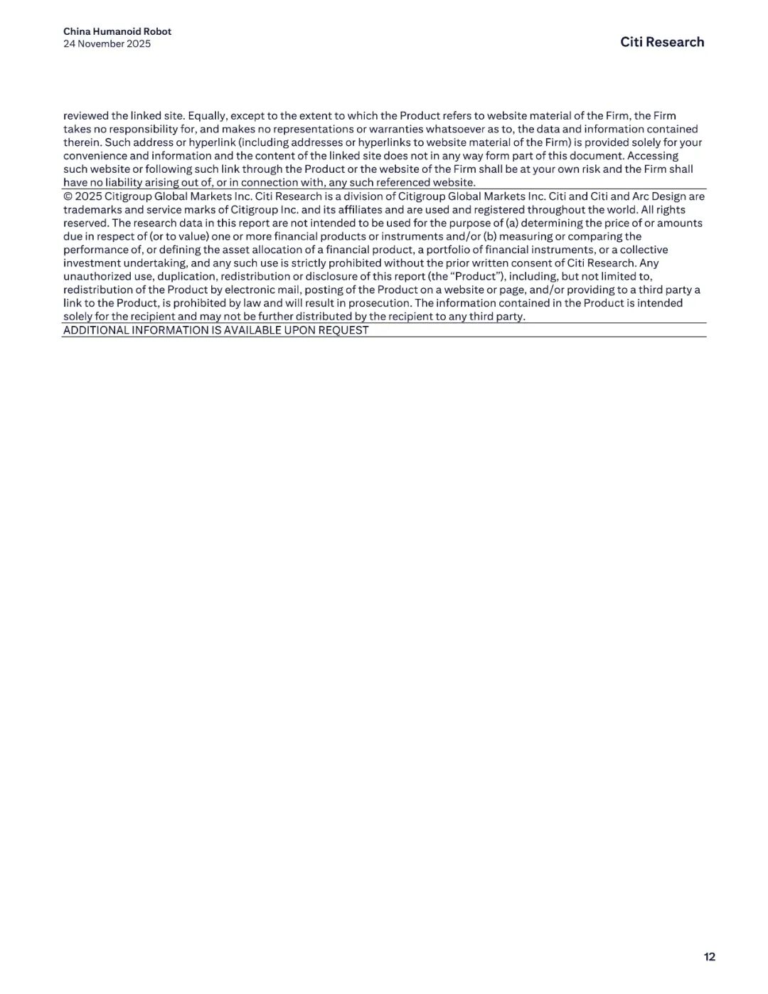 报告名称:中国人形机器人行业——2025年产业调研新发现 出 品 方:花旗