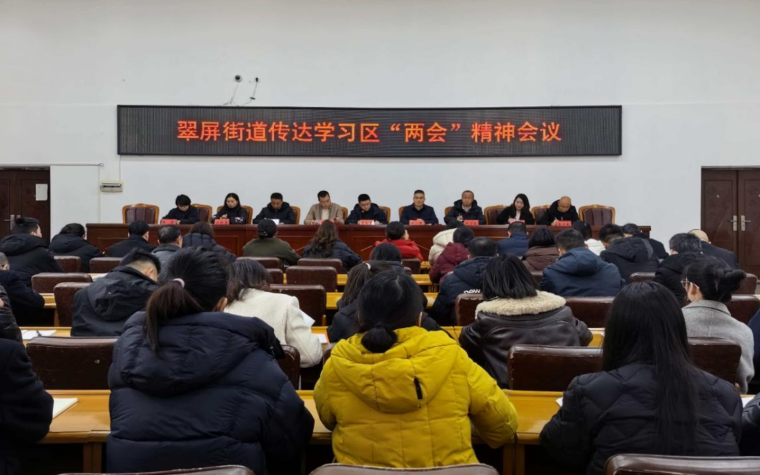 1月28日,翠屏街道召开专题会议,全面传达学习区两会精神,安排贯彻落实举措。
