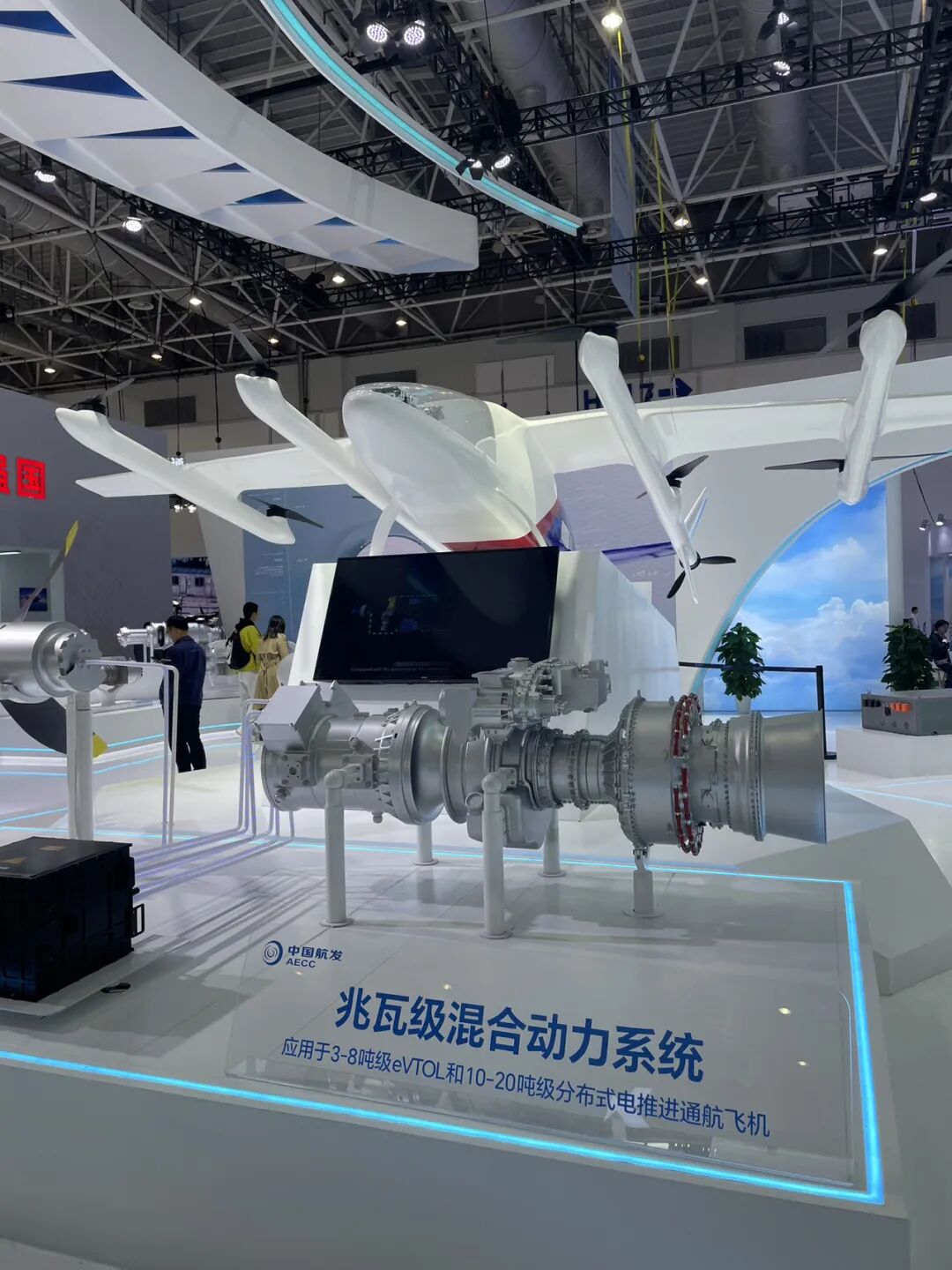 你看拱门后的展馆(图1-2),本届展商覆盖22国387家企业,中航工业(AVIC) 带着AG600M水陆两栖飞机、混动eVTOL等130+展品刷屏(图4);中国航发 亮出的兆瓦级混合动力系统(图5),直接签下超10亿元订单。