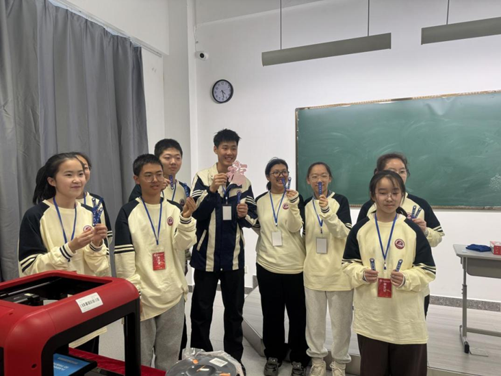 同学们在学校师生指导下分组开展实践操作,完整体验了书签、中国结、钥匙扣等作品的3D打印流程。实践采用“讲清原理—规范操作—排查问题—复盘提升”的闭环模式展开,讲解设备结构、参数设置与操作规范;打印过程中实时巡回指导,帮助同学们识别并解决首层附着、拉丝等常见问题;成型后组织去支撑、后处理及效果复盘,鼓励大家提出改进思路。通过沉浸式动手体验,同学们在“看得见、摸得着、做得出”的过程中,深化了对工程流程与创新方法的理解。