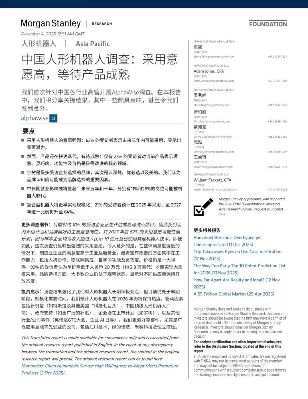 摩根士丹利:人形机器人更接近现实世界|附36页PDF文件下载