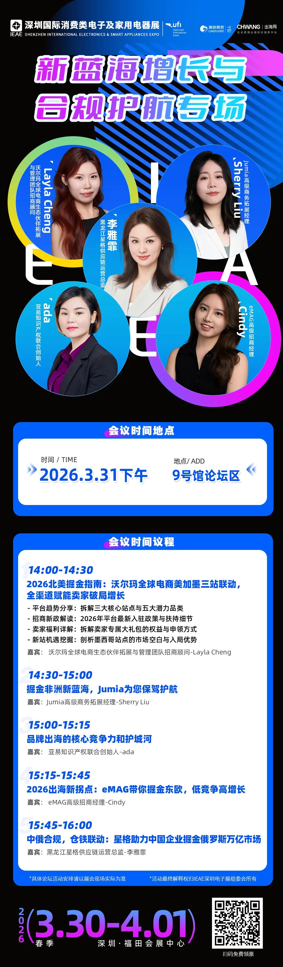 本届展会现场深度策划消费类电子、智能家电创新及跨境私模出海发布会三大核心板块,同期奉上近10场高密度主题论坛!