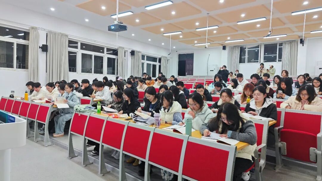 为深入学习贯彻党的二十大精神,进一步加强预备党员教育管理,引导预备党员明确标准、强化担当,机电与智能制造学院于2026年3月21日晚在博学楼A02举办"对标标准强根基 明责知权勇担当"专题党课。本次专题课由院党委副书记梁开亮主讲,机电与智能制造学院、商学院、外国语学院、生物与农业资源学院及李时珍中医药学院全体预备党员参加学习。