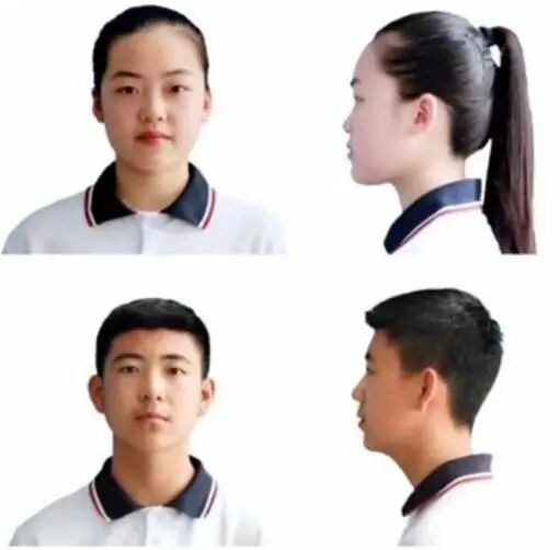 1.发型标准:男生一律留短发,做到前不遮眉、侧不掩耳、后不触领,不烫发、不染发、不留怪异发型;女生发型整洁素雅,不烫发、不染发、不披头散发,不做夸张造型。