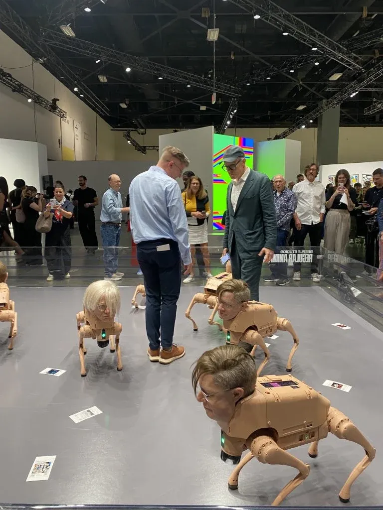 于去年的迈阿密海滩巴塞尔艺术展,全新策展单元“Zero 10”首次亮相即成为焦点。艺术家Beeple在该单元展出了一组由十只机器狗构成的装置,其头部被替换为马克·扎克伯格、杰夫·贝索斯、毕加索、安迪·沃霍尔及艺术家本人等标志性人物的形象。这些装置可为观众拍摄肖像,并将内含可兑换NFT的代码嵌入部分图像中。此举不仅标志着数字艺术已被主流艺术博览会机制所正式接纳,更象征着其地位从实验性领域升级为与绘画、雕塑、影像等并列的主流艺术媒介。
