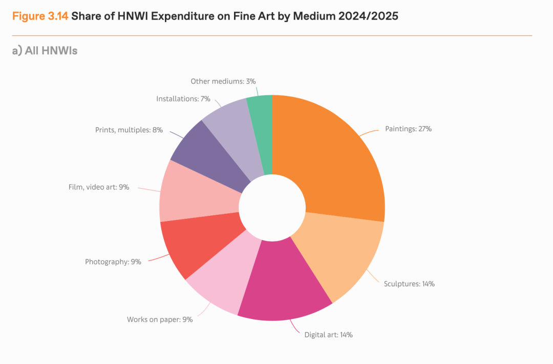 2024/2025年高净值人士在美术品上的支出比例(按媒介划分)