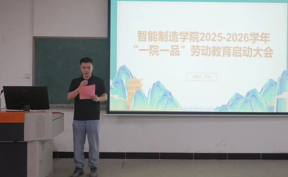 为助力我院学子扎实掌握劳动技能、自觉涵养劳动习惯、牢固塑造正确劳动价值观。2025年10月16日下午,智能制造学院于教1-203教室顺利召开2025-2026学年“一院一品”劳动教育启动大会。本次大会由许标主持。