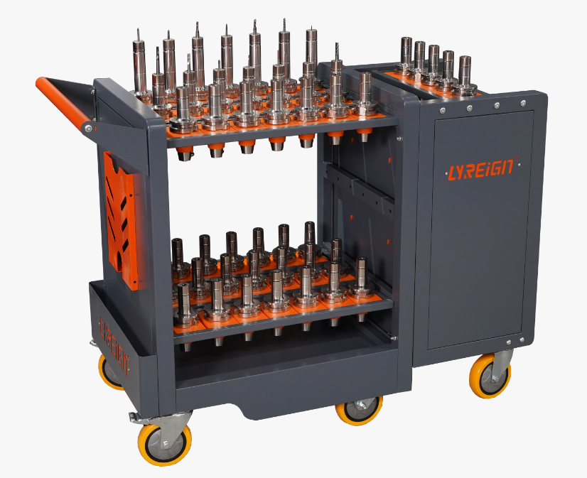 LYREIGN瑞格数控刀具架专为工业场景打造,选用冷轧钢板经激光切割、折弯、焊接等工艺制成,再经酸洗磷化与静电喷涂处理,耐用且防腐蚀。框架稳固,承重出色,部分型号可达 1000kg。其刀套设计贴心,采用 ABS 加厚原料,免螺丝安装,省力便捷。刀套板可按需调节高度,方便存取刀具。侧面设有图纸袋,方便放置资料。具备丰富刀位,适配 BT、HSK 等多系列刀柄,能满足不同数控加工对刀具存储管理的需求。