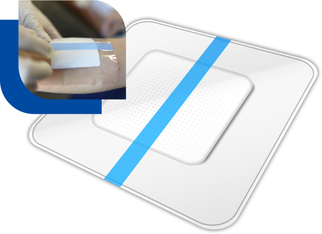 用于非慢性创面(浅表性创面、手术后缝合创面、机械创伤、小创口、擦伤、切割伤创面、穿刺器械的穿刺部位、I度或浅II度的烧烫伤创面)的护理,为创面愈合提供微环境。也可用于对穿刺器械(导管)的穿刺部位的护理并固定穿刺器械。