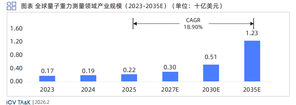 未来量子重力测量产业规模将逐年增长, 2035年将达到12 .3亿美元, 2025- 2035复合年均增长率达18.90%。
