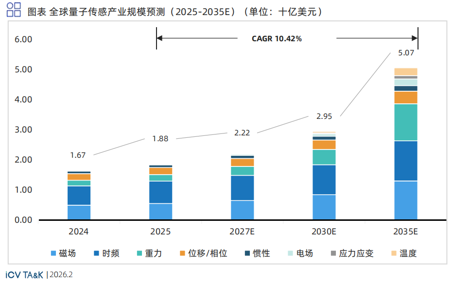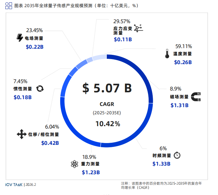 量子传感的各细分方向在技术成熟度上存在明显的代际差异 ,这种差异直接决定了各物理量测量的市场份额与增长节奏。