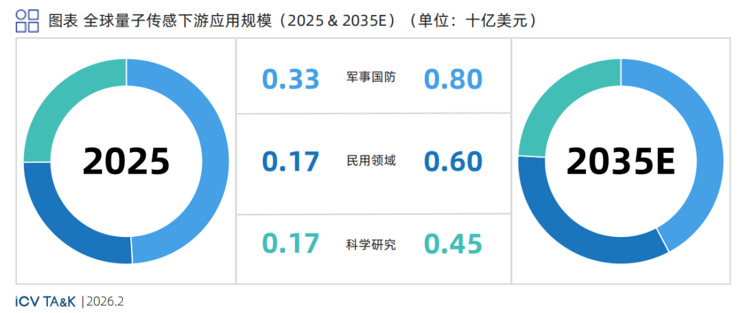 目前量子传感的市场需求高度集中于军事国防领域 ,典型应用包括复杂环境下的高精度自主导航 。这些场景对测量精度要求极高且对成本不敏感 ,构成了行业早期的核心增长点。