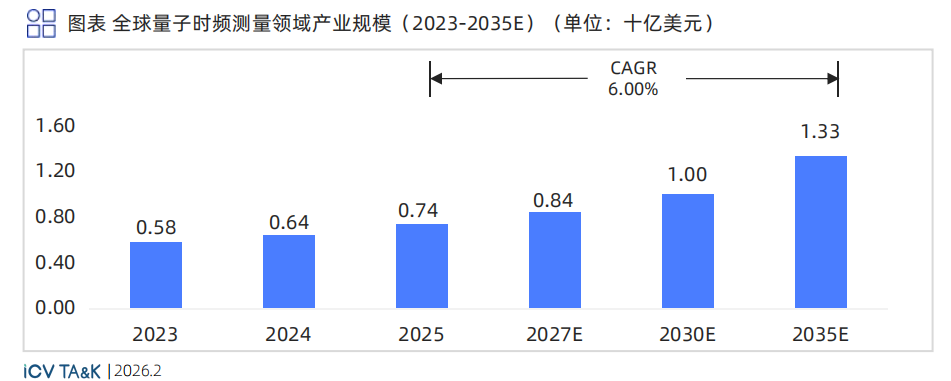 时频测量作为通信同步和授时体系的基础 ,商用化程度较高 ,但受限于基础设施更换周期 ,增速平稳 ,预计2035年总产业规模达13.3亿美元。