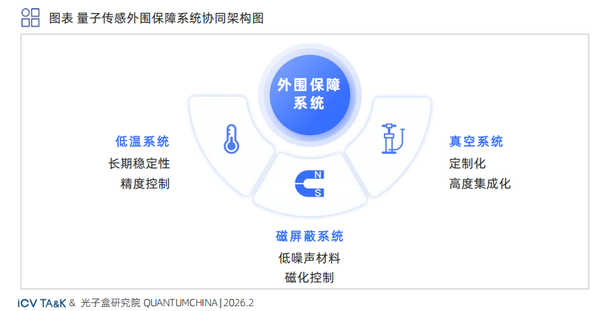 > 外围保障系统:构建低扰动物理环境的运行保障 。包括磁屏蔽 、真空及低温系统等 。研发重点正从分立式设备转向多场耦合一体化设计 ,通过主动动态补偿与紧凑型结构 ,为核心硬件提供受控的物理边界 ,确保系统在复杂工况下的测量重复性。
