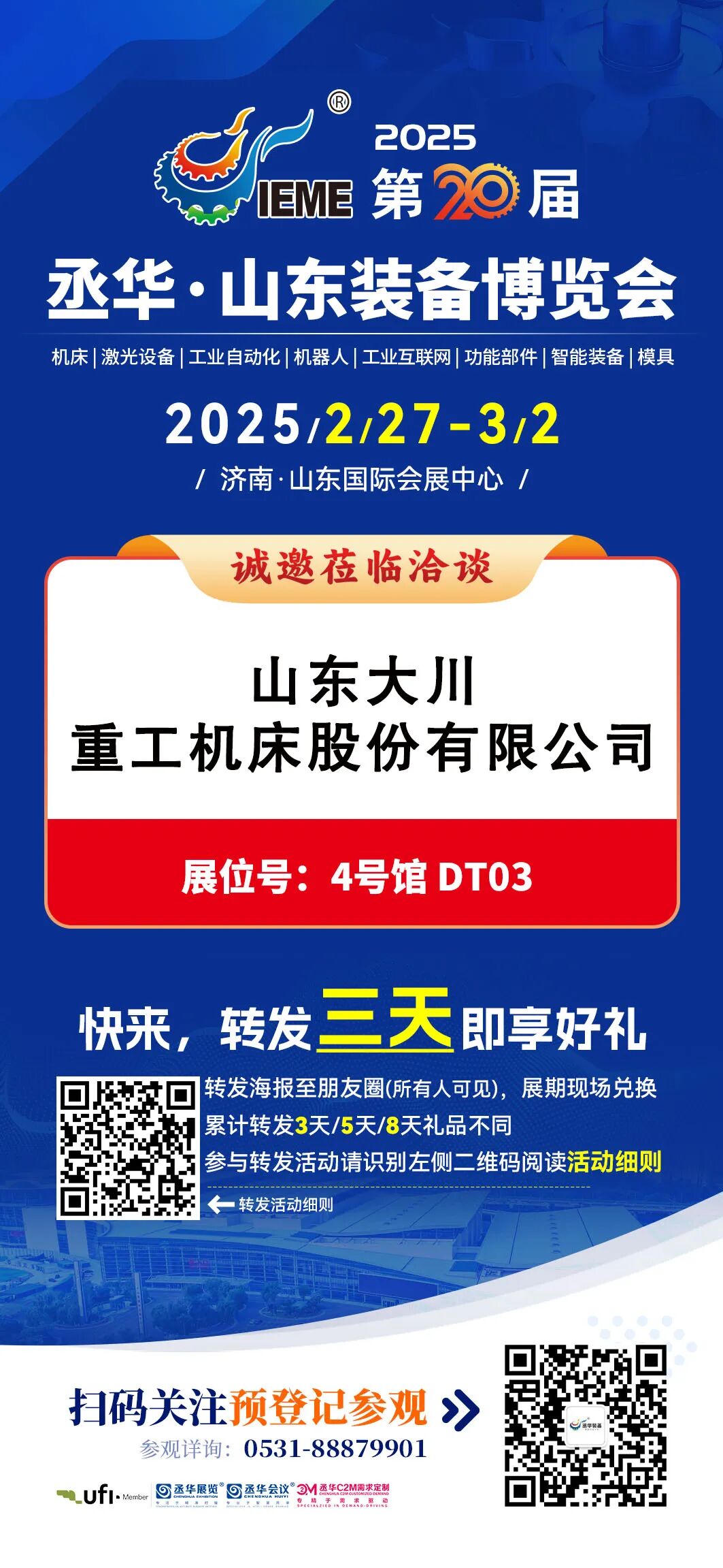 2025年2月27日-3月2日,第20届中国(山东)国际装备制造业博览会将再次盛装启幕,诚邀您亲临山东国际会展中心,共同体验这场装备制造的行业盛宴!