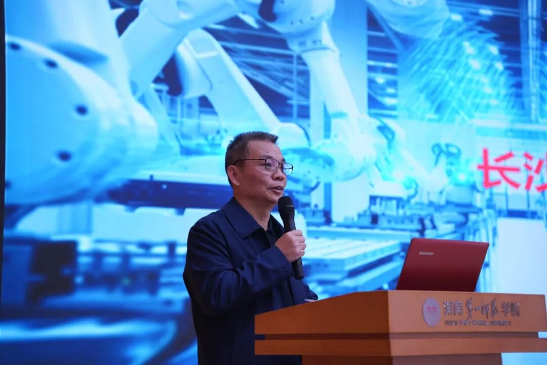 12月16日,由长沙市科学技术协会、湖南湘江新区(岳麓区)科学技术协会指导,长沙市机械工程学会、长沙市企事业科协联合会、湖南第一师范学院联合主办的“2025 AI赋能装备制造业高质量发展论坛”在湖南第一师范学院东方红校区成功举办。近200名来自高校、科研机构、企业及媒体的代表齐聚一堂,共同探讨人工智能技术在装备制造业中的前沿应用与发展路径,为推动长沙制造业智能化升级凝聚共识与智慧。