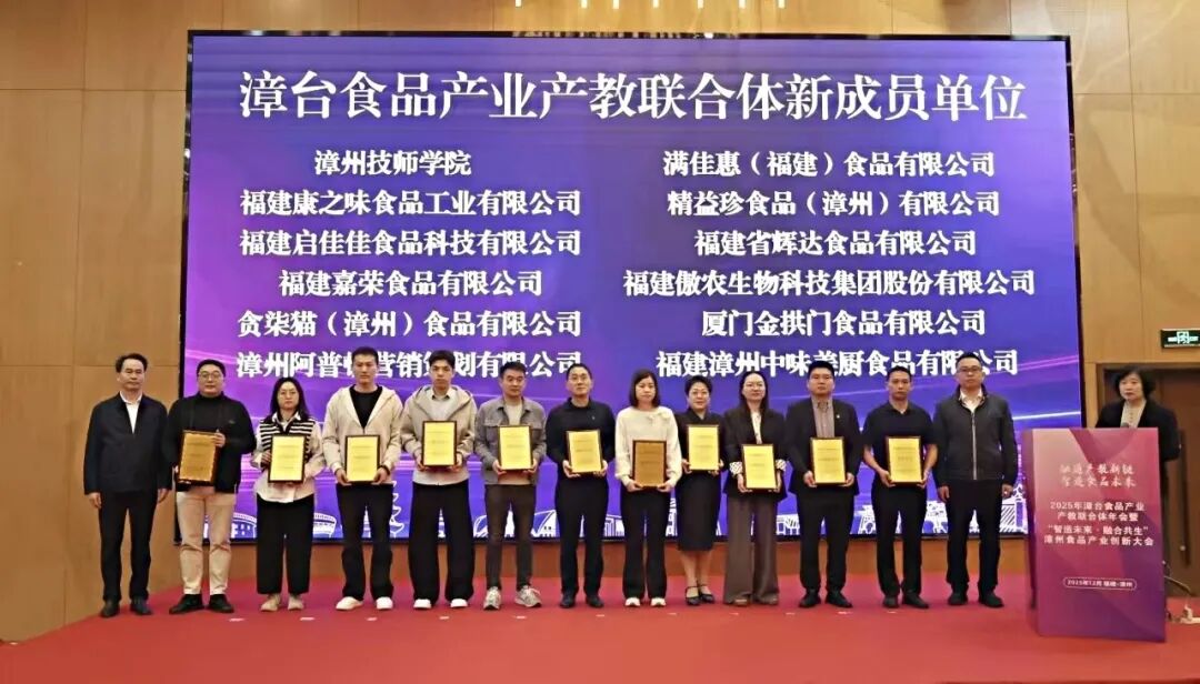 本次大会以“融通产教新链,智造食品未来”为主题,汇聚政府、行业、院校及企业代表,围绕食品产业智能化与产教融合开展深入交流。会上举行新成员单位授牌仪式,周俩团副院长代表学院接牌,标志着学院正式融入漳台食品产业协同发展体系,为食品类专业建设与人才培养搭建更优平台。