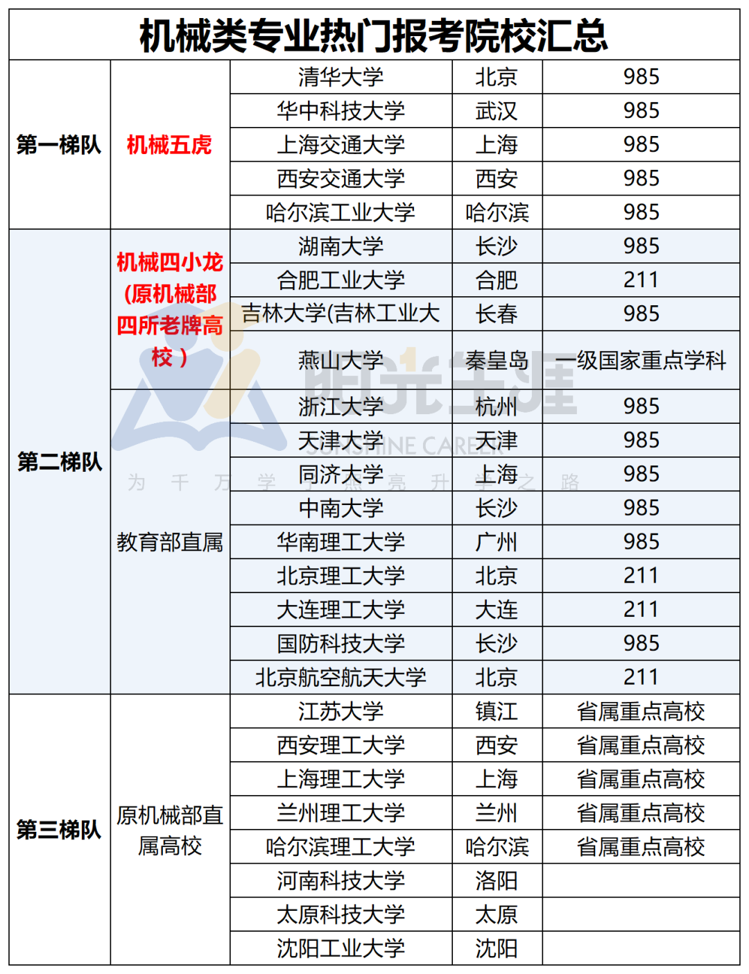 机械类专业热门院校以“机械五虎”和“机械四小龙”这九所高校为主。