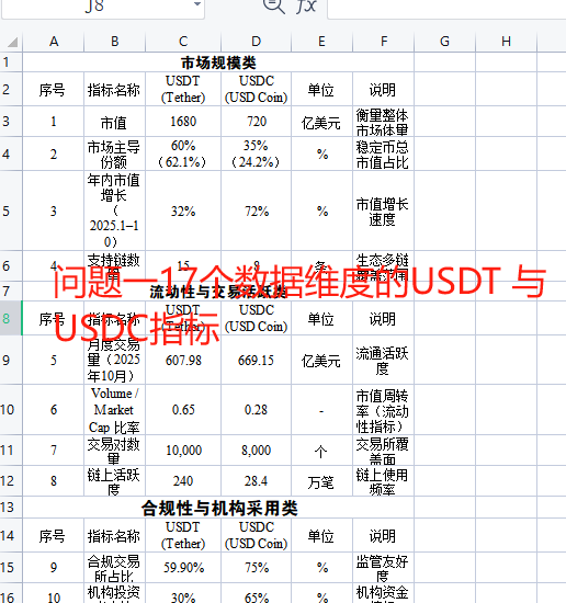 问题一17个数据维度的USDT 与 USDC指标