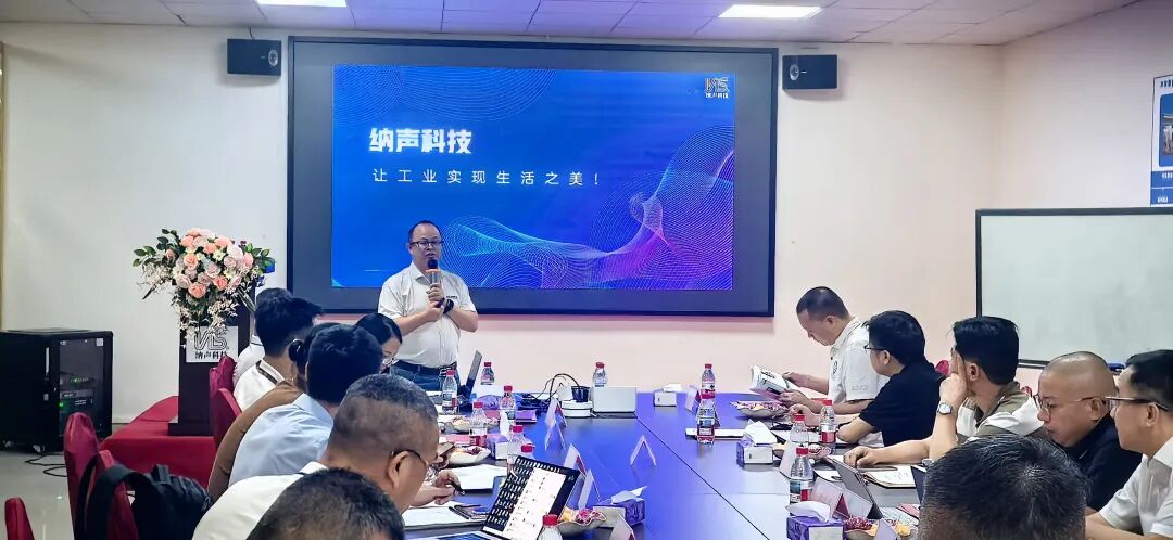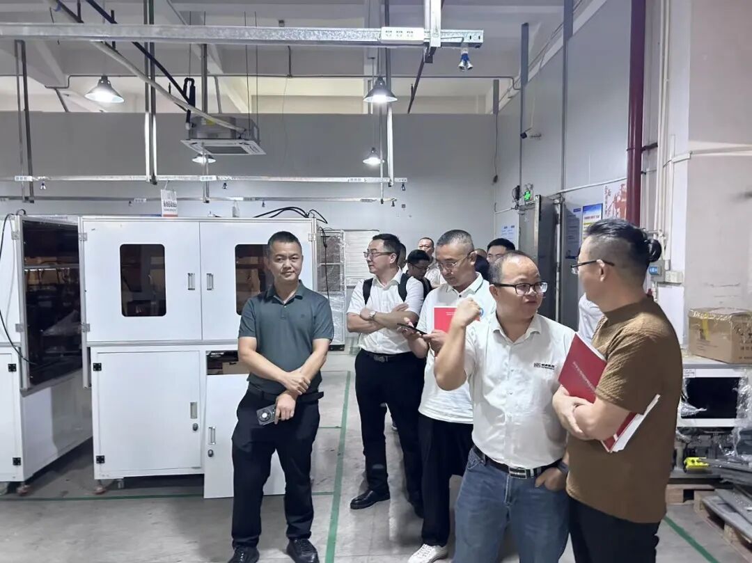 在参观过程中,纳声科技李总带领与会代表参观了东莞市纳声电子设备科技有限公司的生产车间,向代表们详细介绍了纳声科技的主要产品和核心技术,分享了企业在生产管理、质量控制、技术研发等方面的经验做法。代表们就感兴趣的技术问题和企业管理问题与纳声团队进行了深入交流,也与不少代表达成下一步合作的意向。