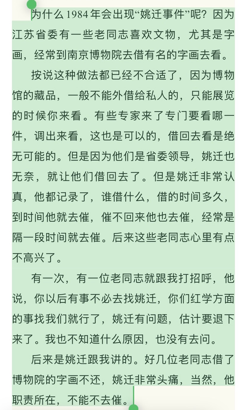 据冯其庸在回忆录中专述姚迁的部分所述,彼时一些老同志向藏家“借看”有名款的书画实属常态,而借走不还亦屡见不鲜。姚迁除履行院长职责外,另一项重要工作竟是四处催还这些被借走的名画。正因如此,他得罪了不少人。
