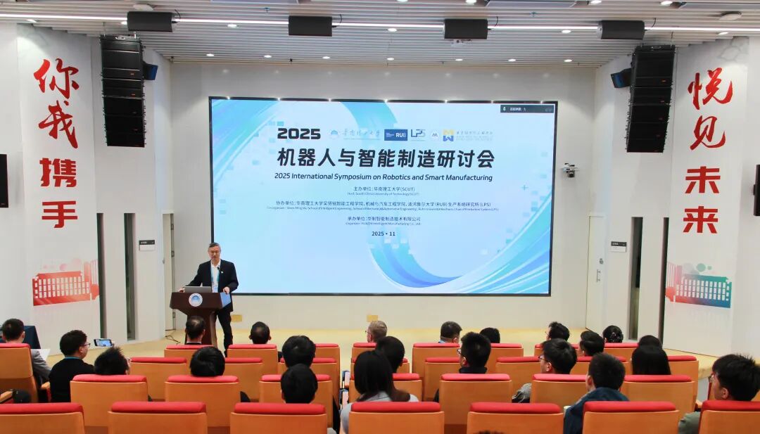 11月24日,由华南理工大学主办,华南理工大学吴贤铭智能工程学院、机械与汽车工程学院、德国波鸿鲁尔大学生产系统研究所协办,华制智能承办的“2025机器人与智能制造研讨会”在吴贤铭智能工程学院成功举办。