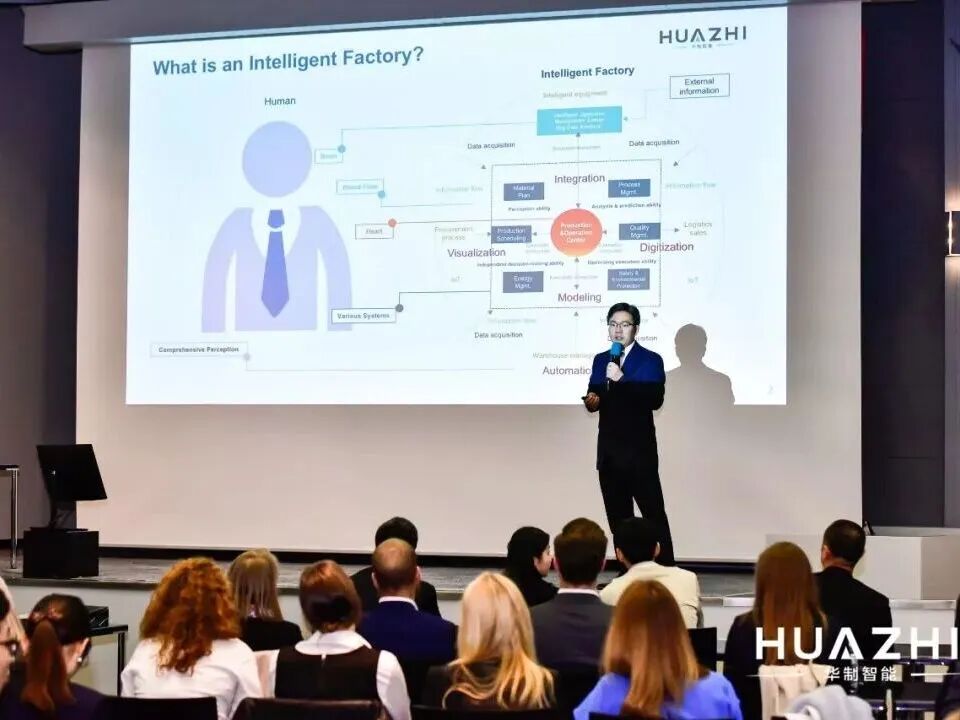 蒋俊峰作了题为《Intelligent Manufacturing Practice》的报告,分享了华制智能在智能制造领域的产业实践。他表示,公司紧跟国家制造强国战略,以“战略—评估—蓝图—实施”为方法论,聚焦产供销一体化、集成生产管控和产品全生命周期管理三大主线,构建了以华制云工业互联网平台为核心的“1+4+N”产品应用生态体系。通过智能工厂与工业AI产品解决方案,助力工业企业实现智能制造深度融合与数字化转型,并结合多个行业案例,分享了华制智能在赋能企业转型与机器人新技术应用方面的实践成果。