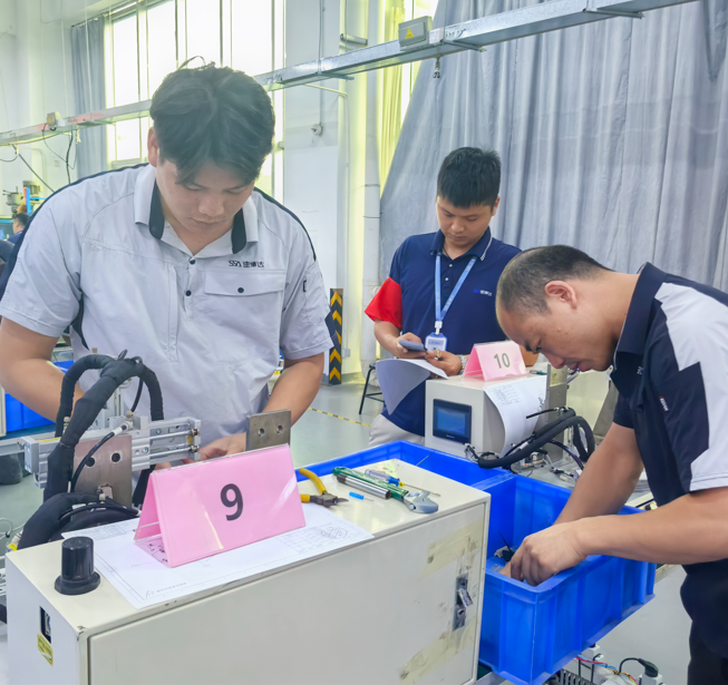 本次实操考核难度有点大,大家争分夺秒,直到宣布考核时间结束,所有人才停下手中的动作,仍有少数人没有装配调试完成。