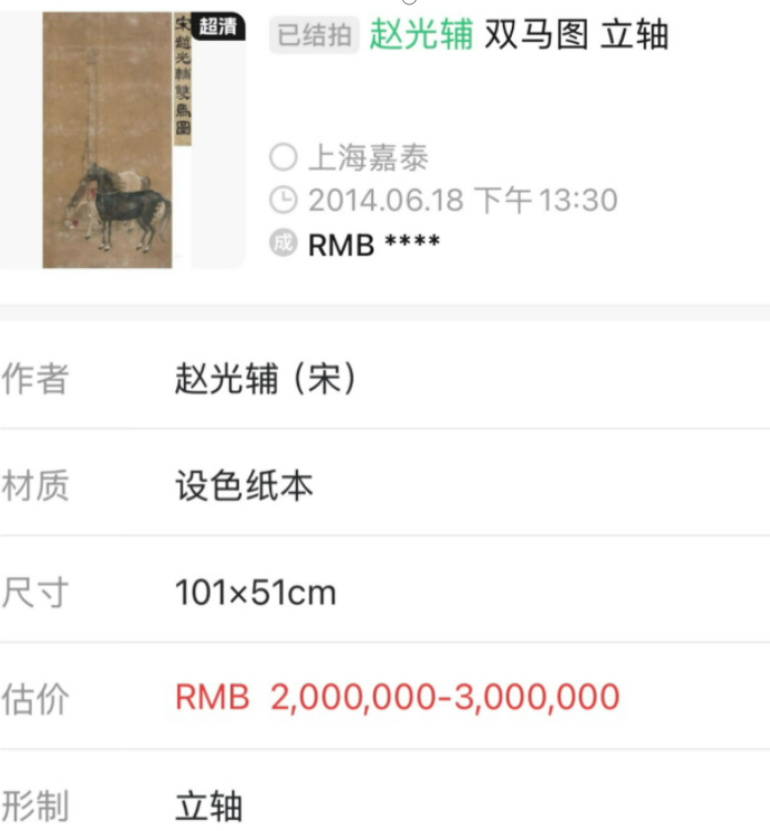 《双马图》香港拍卖公司的交易信息
