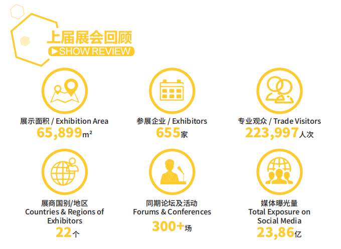 为期五天的展会共吸引了223,997人次专业观众到场,来自全球133个 国家和地区,其中中国境内观众来自31个省、自治区和直辖市。
