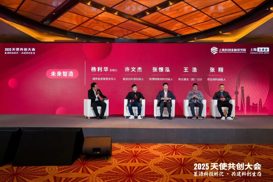 在下午举行的“天使对谈共创”圆桌三中,涌铧投资管理合伙人杨利华担任主持人,与威浪达科技创始人许文杰、阿博特新材料创始人张憬泓、奇点激光(拟)CEO王浩、然见材料创始人张翔展开对话。几位嘉宾分别深耕毫米波天线、热防护材料、飞秒激光装备、绿色储能材料等关键领域,大家围绕行业趋势与生态赋能两大核心问题展开深度探讨。