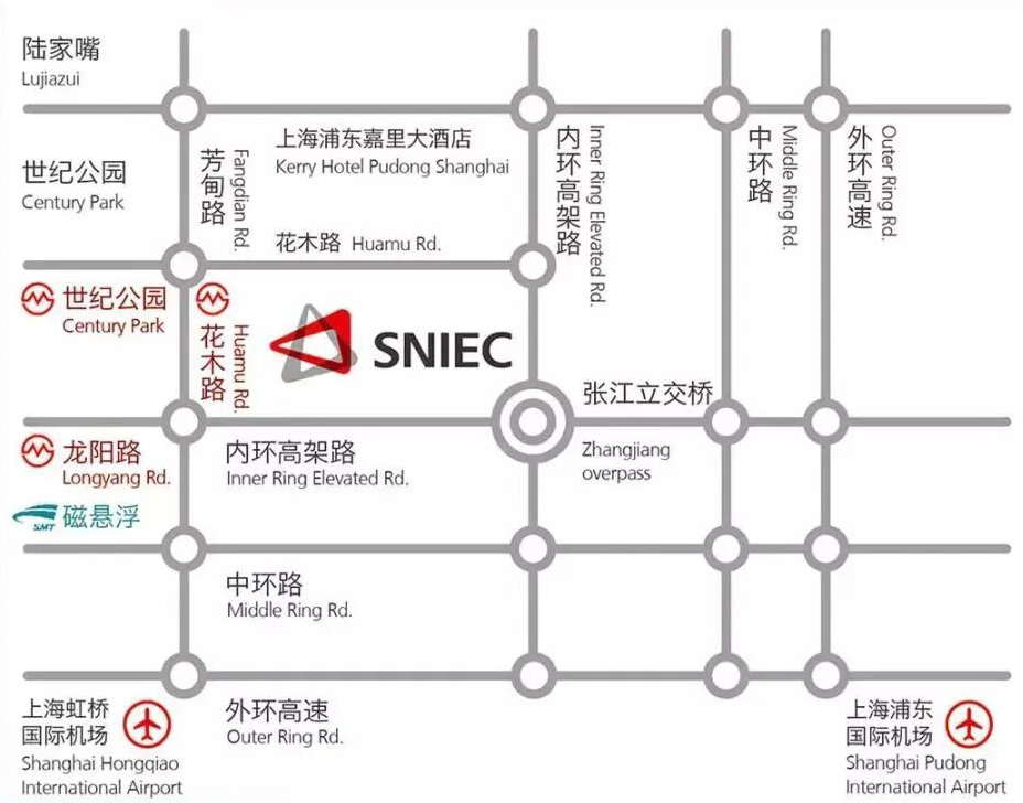•乘坐地铁1号线至人民广场站,换乘8号线到耀华路站,换乘7号线到花木路站下,然后步行即达展馆2号入口厅